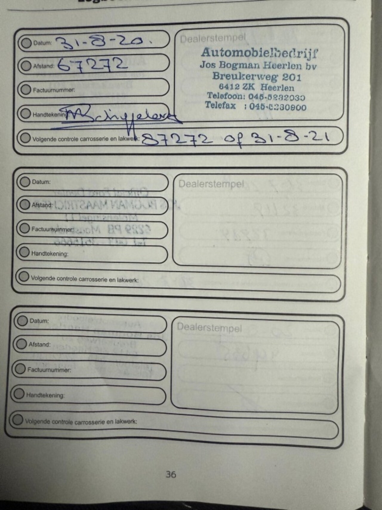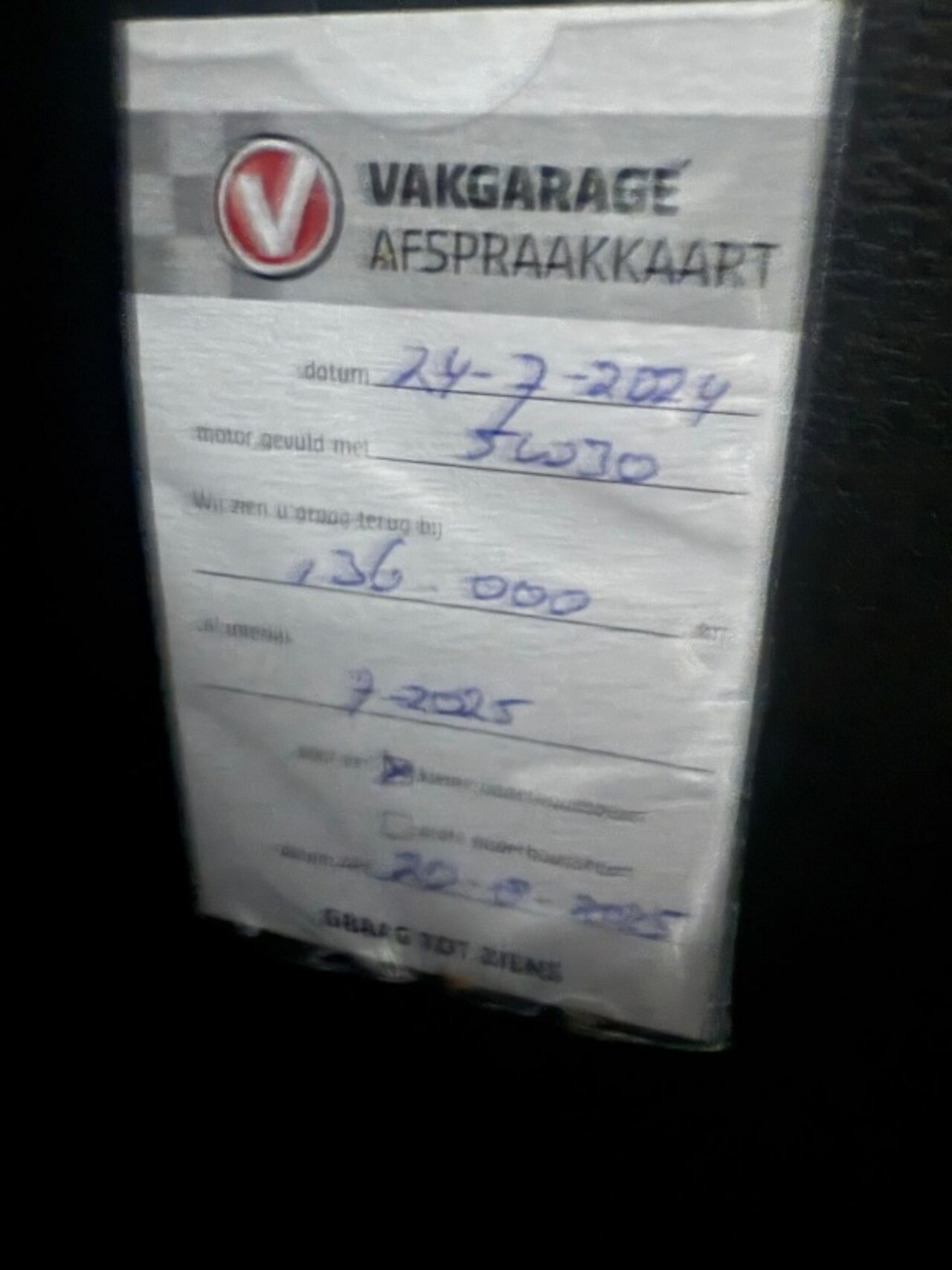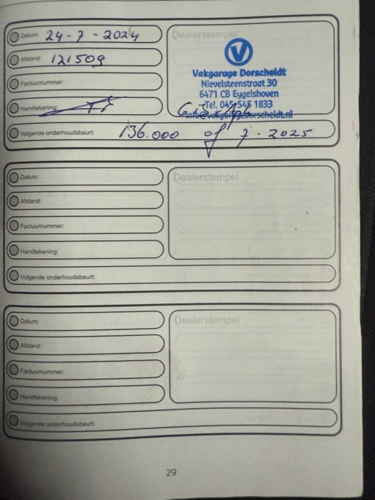 | APK | Bij aflevering |