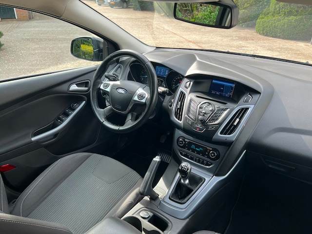 Nette en luxe Ford Focus 1.0 Titanium wagon. Deze Focus is voorzien van vele opties zoals navigatiesysteem, climate control, cruise control, parkeersensoren voor en achter, automatisch inparkeren, bluetooth, privacy glass, voorruitverwarming, trekhaak, keyless entry/go, elektrisch inklapbare spiegels, en nog veel meer. De auto is altijd netjes onderhouden, de distributieriem is vervangen bij 156.218 km en de laatste onderhoudsbeurt was bij 174.503 km. Verder is de auto APK-gekeurd t/m 10 juni 2026, een nieuwe APK is uiteraard ook bespreekbaar. Deze Ford Focus rijdt en schakelt zeer goed!