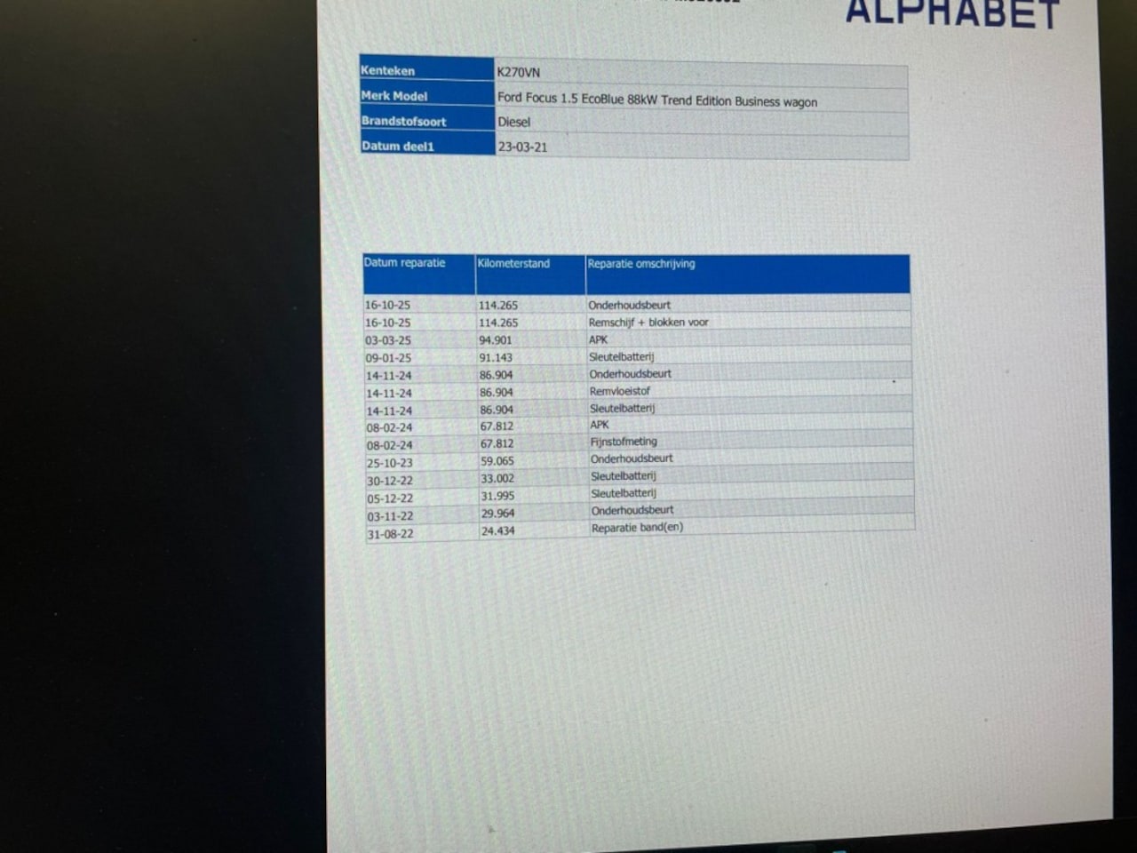 Nationale Auto Pas: de kilometerstand is gecontroleerd en logisch bevonden. 118.857 km