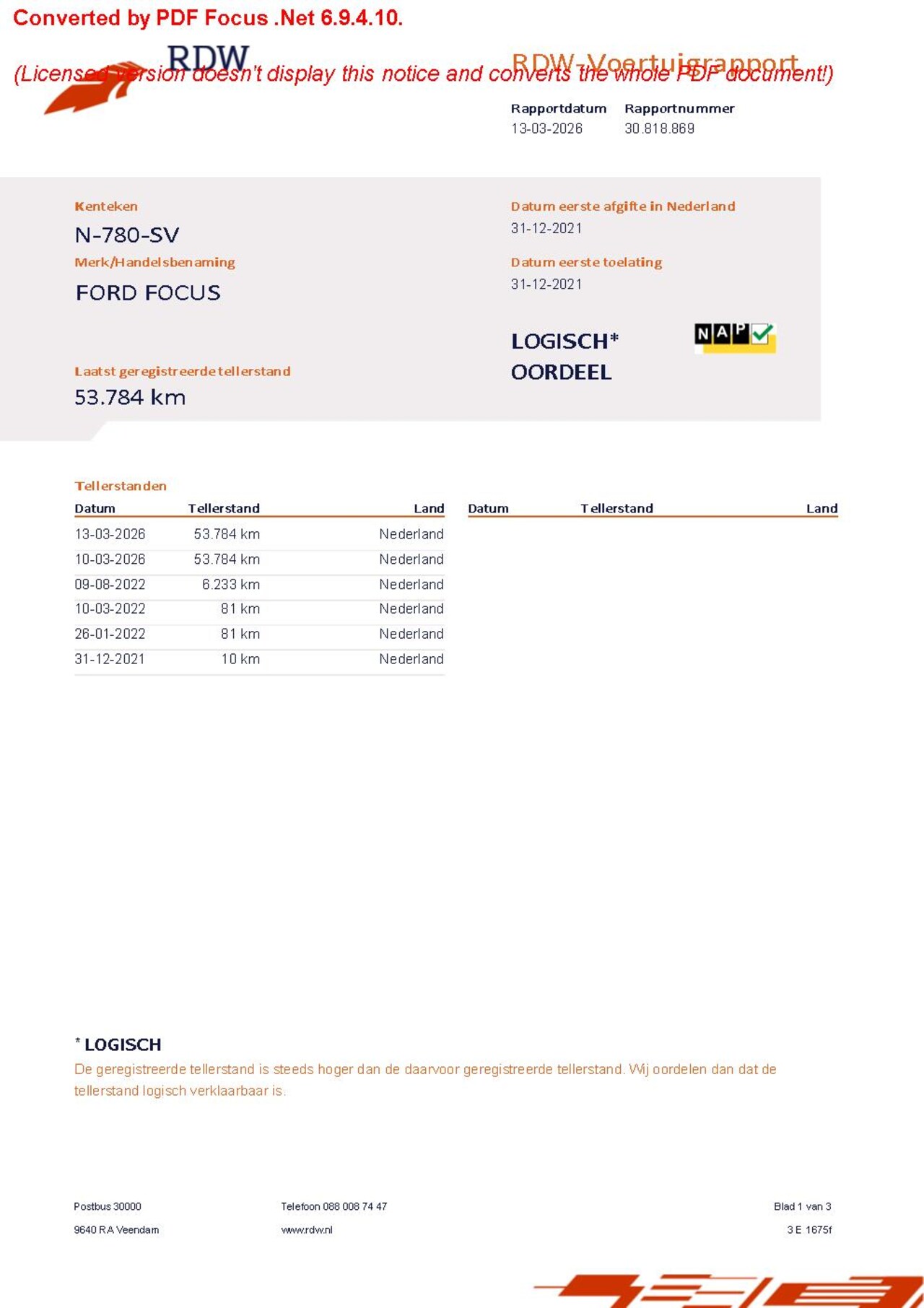 | Kilometerstand | 53.784 km |