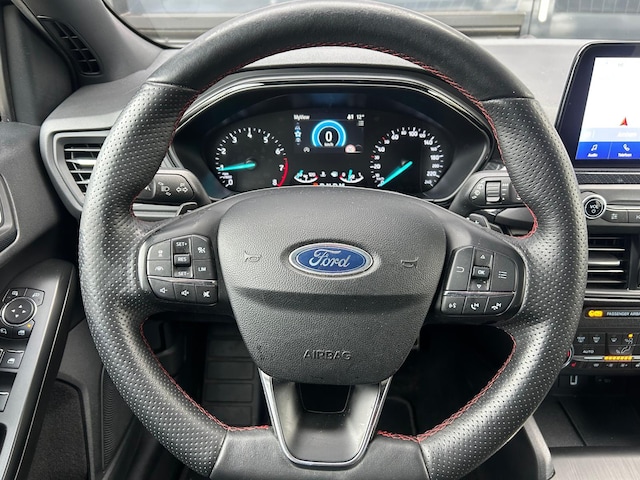 Een van de meest legendarische merken: Ford. Qua techniek en design geheel met de blik op de toekomst. 'Go Further' zeggen ze. En dat is te zien. De aandrijving van deze Ford wordt verzorgd door een driecilinder motor en een automatische transmissie. De auto is uitgerust met lederen bekleding. Bestuurder en bijrijder krijgen een warm welkom: deze Ford Focus Wagon is voorzien van verwarmbare voorstoelen. U blijft ook in de scherpe bochten goed ondersteund door de fraaie sportstoelen. Pak aan, 't is winter! Zo'n verwarmd stuurwiel is dan bijzonder prettig! Ook 18 inch lichtmetalen velgen, LED koplampen, dakspoiler, extra getint glas, in delen neerklapbare achterbank en LED-achterlichten zijn aan boord.