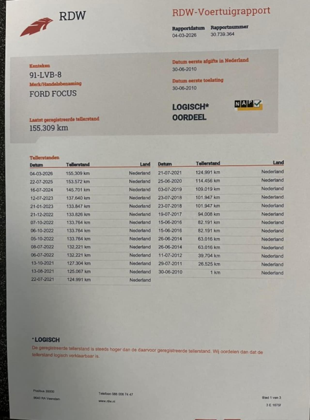 | Kilometerstand | 155.309 km |