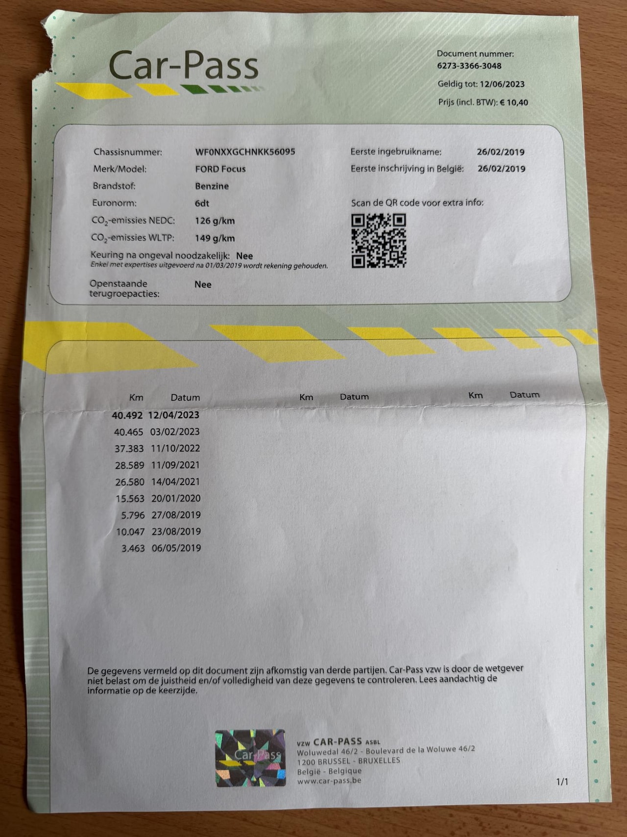 | APK | Bij aflevering |