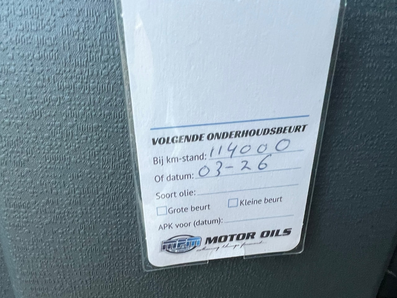 | APK | Bij aflevering |