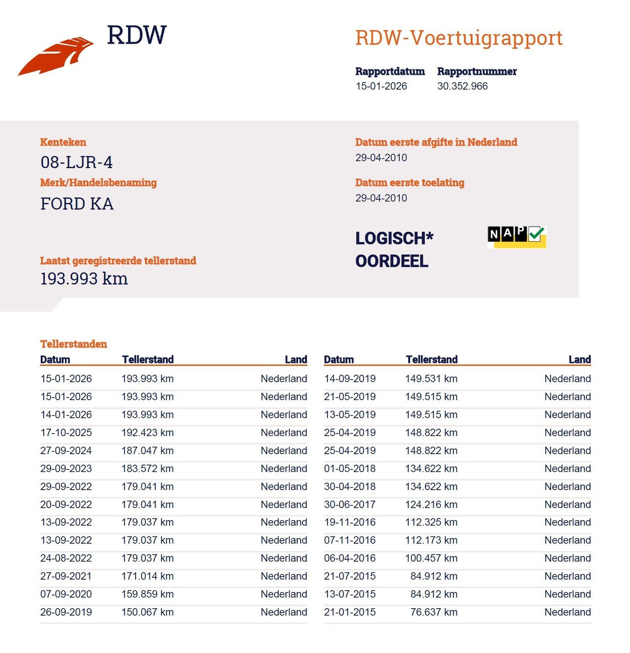| Kilometerstand | 193.993 km |