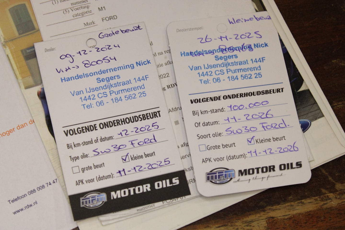 | APK | Bij aflevering |