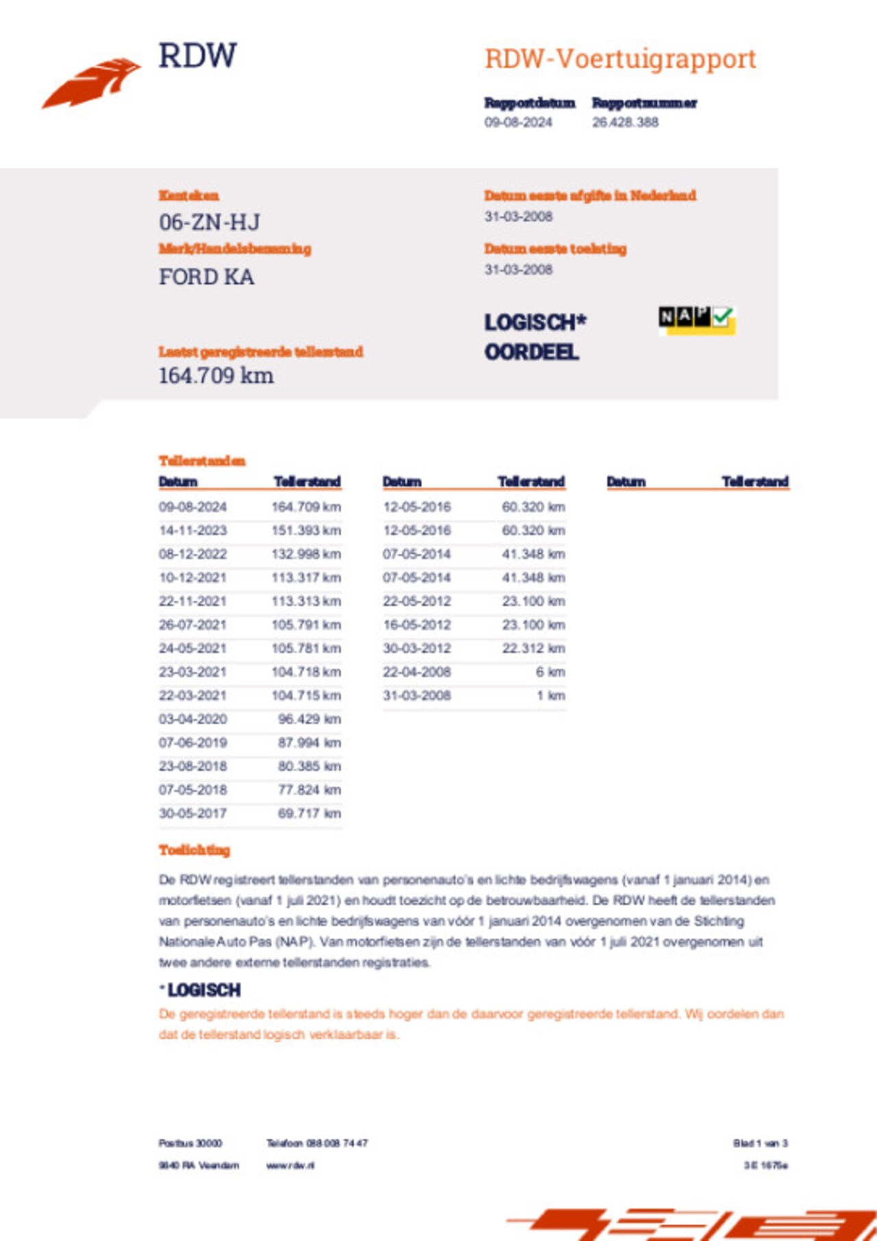 | Kilometerstand | 164.912 km |
