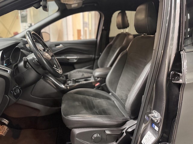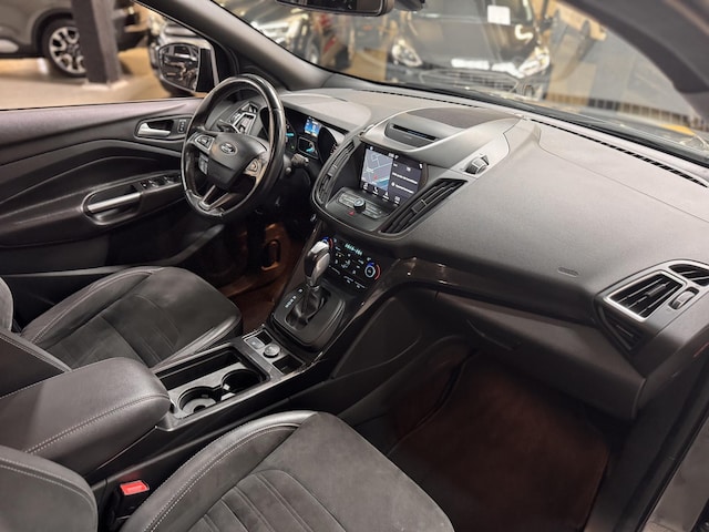 Luxe, Sportieve en Dealeronderhouden Kuga 1.5 EcoBoost 182pk Automaat AWD ST-Line met Trekhaak (1.850kg Trekgewicht) en voorzien van compleet Body Styling pakket, Privacy Glass, 18" Lichtmetalen velgen, Leder Alcantara bekleding, Touchscreen Navigatie, Apple CarPlay & Android Auto, Achteruitrijcamera, Voorruitverwarming, Automatisch Inparkeren icm. Parkeersensoren rondom, Cruise Control, Climate Control, Schakelflippers aan het stuur, DAB+ Radio CD & USB, Bluetooth & Voice control, Aut. Licht- & Regensensor, Aut. dimmende Binnenspiegel, Mistlampen en Extra set 17" Lichtmetalen velgen met Winterbanden.