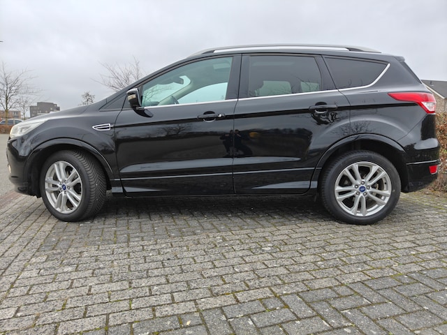 Speciaal voor u geselecteerd: Luxe en zeer compleet uitgeruste Ford Kuga 1.6 150pk 4 Wheel Drive Titanium PLUS. Mooie verschijning metallic zwart en 18 inch origineel Ford lichtmetalen velgen, half leder uitgevoerd. 2000kg trekgewicht!