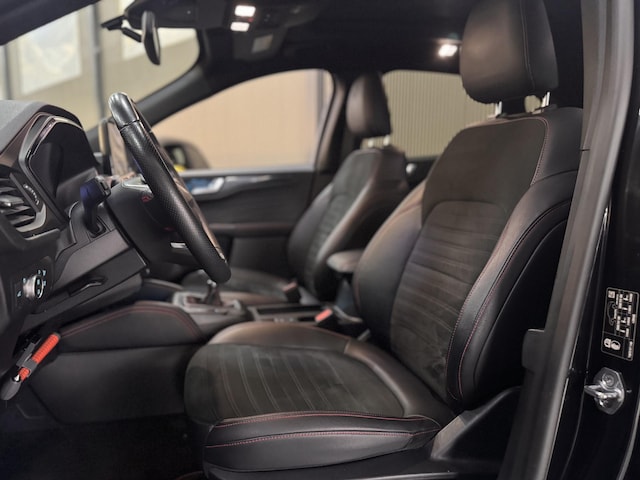 Zeer complete, Sportieve en Dealeronderhouden 150pk KUGA ST-Line X met Trekhaak (1.800kg Trekgewicht) en voorzien van Elektrisch te openen Panoramadak, Leder Alcantara bekleding icm. in hoogte verstelbare Sportstoelen, Elektrisch verstelbare Bestuurdersstoel, compleet Digitaal Dashboord, Adaptieve Cruise control, Achteruitrijcamera & Camera voor, Automatisch Inparkeren icm. parkeersensoren rondom, Touchscreen Navigatie, B&O Premium DAB+ Radio & USB, Elektrische Handsfree Achtrerklep, Bluetooth & Voice control, Apple Car Play & Android Auto, Climat control, Adaptieve LED Koplampen icm. Grootlichtassistent, HUD (Head Up Display), Draadloos opladen, Pre-Collision Assist, Dodehoek detectie, Lane Keeping aid, Verkeersbordherkenning, Active City stop, Cross-Traffic Alert, Wrong way Alert, Elektrisch inklapbare Buitenspiegels, Keyless Entry & Start, Zichtpakket, Privacy Glass en 18" Lichtmetalen velgen.