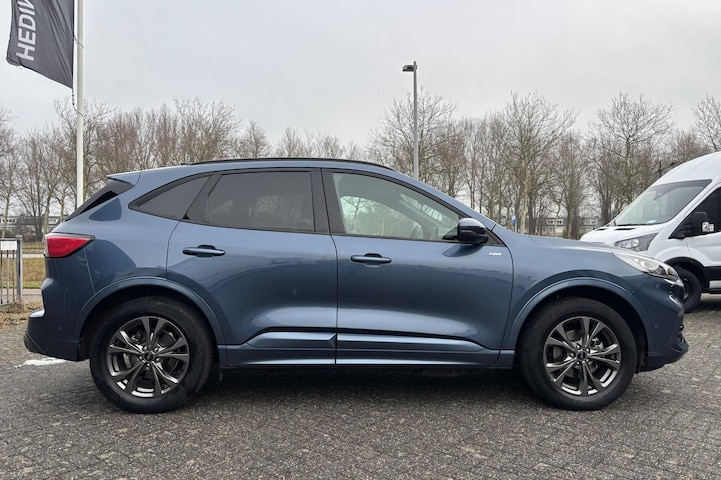 Ford heeft door de jaren heel wat onvergetelijke modellen gepresenteerd. En aan die gewoonte komt geen eind. 'Go Further', zeggen ze zelf. Kiezen tussen benzine óf elektrisch hoeft bij deze Ford Kuga niet. De hybride motor schakelt gemakkelijk over als jij dat wilt. Met functies als stoelverwarming, verwarmbare achterbank en een verwarmbaar stuur, is comfort gegarandeerd in dit voertuig tijdens koude ritten. Voor het pittige uiterlijk én goed gesteund zitten zorgen de sportstoelen. Een handige voorziening op deze auto is de elektrische achterklep die je op afstand kunt openen. Ook 18 inch lichtmetalen velgen, LED koplampen, sportonderstel, geluidsisolerende ramen, in delen neerklapbare achterbank en LED-achterlichten horen tot de voorzieningen op deze auto.