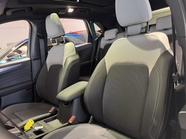 Herkenbaar design gaat bij Ford samen met maximaal rijplezier. Als u van autorijden houdt, dan zit u met deze Kuga beslist goed. Zuinig rijden, minder uitstoot, maximale radius. Door de hybride motor die elektrisch én benzinerijden mogelijk maakt is dit de ideale combi. Essentiële functies activeren gaat met één druk op de knop: bij het elektrisch bediende glazen panorama dak én de elektrisch bedienbare achterklep. Zit u goed? De stoelen zijn eenvoudig instelbaar dankzij de elektrische bediening met geheugen. Zelfs als het buiten ijzig koud is, kunnen zowel de bestuurder als de passagiers op de achterbank snel opwarmen, dankzij de verwarmbare stuurwiel en de achterbankverwarming. De matrix LED-verlichting is het allernieuwste op het gebied van autoverlichting. Altijd maximaal licht op de weg, zonder tegenliggers te hinderen! In deze auto profiteert u onder andere ook van: 20 inch lichtmetalen velgen, sportonderstel, geluidsisolerende ramen, in delen neerklapbare achterbank, LED-achterlichten en sportuitlaat.