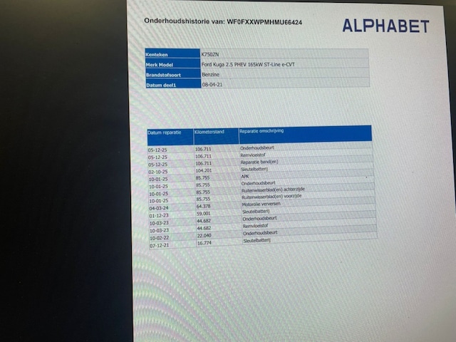 Prachtige 2021 FORD KUGA 2.5 PHEV ST-Line SUV in een stijlvolle grijze kleur. Deze auto is voorzien van alle luxe en comfort die je nodig hebt voor een aangename rijervaring. Met een kilometerstand van 117520 en 100% dealeronderhouden, ben je verzekerd van een betrouwbare auto. De FORD KUGA is uitgerust met een scala aan handige accessoires, waaronder cruise control, automatische airconditioning, Apple CarPlay, een achteruitrijcamera, stoelverwarming voor en stuurverwarming. Het sportstuur zorgt voor een dynamische rijervaring, terwijl de afneembare trekhaak zorgt voor extra flexibiliteit. Met radio DAB en parkeerhulp voor en achter is het makkelijk om comfortabel en veilig te rijden. Deze auto is ideaal voor lange ritten, dankzij de carplay, achteruitrijcamera en stoelverwarming. Of je nu op reis gaat of gewoon je dagelijkse boodschappen doet, de FORD KUGA biedt comfort en gemak in elke situatie. Op zoek naar een betrouwbare en luxe SUV met alle moderne gemakken? Dan is deze FORD KUGA 2.5 PHEV ST-Line de perfecte keuze. Met zijn krachtige motor, comfortabele interieur en handige accessoires is deze auto klaar om jouw rijervaring naar een hoger niveau te tillen. Neem vandaag nog contact met ons op voor meer informatie over deze FORD KUGA of om een proefrit te plannen. We staan klaar om je te helpen in het vinden van jouw ideale auto.