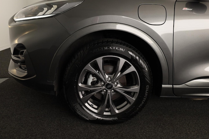 Go Ford, Go Further. En dat maakt deze auto helemaal waar. Deze hybride Ford Kuga gaat slim om met energie. Door rijden en remmen wordt de accu van de elektromotor opgeladen, die de brandstofmotor en handje helpt of zelfs de aandrijving overneemt. Je zult absoluut de luxe waarderen van de stoelverwarming, verwarmbare achterbank, en het verwarmbare stuur dat inbegrepen is in dit voertuig. Scherpe bochten, pittige acceleraties? In de sportstoelen blijf je altijd in positie. De uitmonstering van deze auto wordt gecompleteerd door onder meer 18 inch lichtmetalen velgen, sportonderstel, LED-dagrijverlichting, extra getint glas, in delen neerklapbare achterbank en LED-achterlichten.