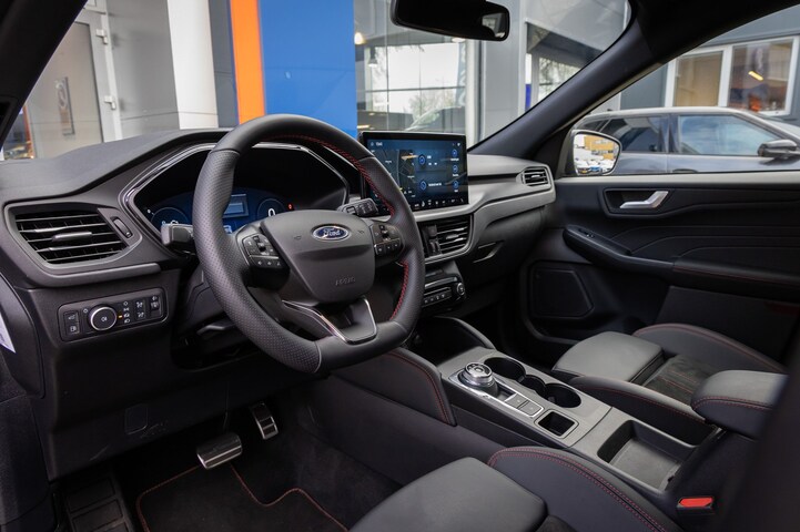 Rijden in een Ford betekent toekomstgericht de weg op gaan. Een stapje meer doen, de voorsprong pakken. Go Further, zoals ze zelf zeggen. De hybride motor combineert een elektromotor met een verbrandingsmotor. U kunt dus kiezen. Neem plaats op de comfortabele stoelen. Dankzij de elektrische bediening en het geheugen is het eenvoudig om hierin de beste zitpositie te vinden. Deze auto levert de ultieme rijervaring met eersteklas functies zoals stoelverwarming, een verwarmbare achterbank en een verwarmbaar stuur. Een praktische extra is de elektrisch bedienbare achterklep die opent en sluit met een druk op de knop. Tot de uitrusting van deze Ford behoren ook 18 inch lichtmetalen velgen, LED koplampen, geluidsisolerende ramen, in delen neerklapbare achterbank, LED-achterlichten en sportuitlaat. Rij- en route-info wordt perfect in beeld gebracht door het digitale dashboard. De vier camera's genereren samen een 360 graden beeld rond de auto, zodat u een volledig overzicht hebt van wat er rondom uw auto gebeurt. Met adaptive cruise control houdt deze auto automatisch afstand tot uw voorligger. Dankzij Connected Services weet u precies waar uw auto geparkeerd staat. Ook andere functies, zoals bandenspanning en brandstofniveau, zijn via de app altijd onder handbereik. Geen betere plek om naar goede muziek te luisteren dan in de auto. Daarom treft u hier het high performance audiosysteem aan! En deze auto heeft ook dashboard met spraakbediening, full map navigatiesysteem, kruisend verkeer detectie, automatische airconditioning, draadloos opladen en DAB ontvangst als standaard uitrusting. De Ford Kuga is ook voorzien van ADAS. Deze Advanced Driver Assistence Systems fungeren als extra ogen en oren: ze houden voor u de weg in de gaten en grijpen in wanneer dat nodig is. Wat deze auto ook kan, is lezen. Hij 'leest' voor u de verkeersborden tijdens de rit en attendeert u erop door ze op het dashboard te projecteren. Het Lane-keeping systeem zorgt voor een automatisch constante positie binnen de rijstrook. Afdwalen is uitgesloten. Forward collision warning helpt u om kop-staart aanrijdingen te voorkomen. De veiligheid van deze auto wordt verder verhoogd door dodehoekdetectie, hill hold functie, vermoeidheidsherkenning, frontale botsbescherming en bandenspanningcontrolesysteem. U bent nieuwsgierig? Bel of mail ons dan direct om een proefrit te reserveren.