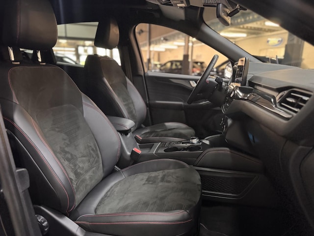 FULL OPTIONS ! KUGA ST Line-X PHEV 225pk Hybrid Automaat met Styling pakket, Elektrisch te openen Panoramadak, Compleet Digitaal Dashboord, Leder Alcantara bekleding icm. Verwarmbare Sportstoelen, Elektrisch verstelbare Bestuurdersstoel, Elektrische Handsfree Achterklep, Adaptieve Cruise control icm. Stop & Go, Adaptieve Full LED Koplampen icm. Aut. Grootlicht assist, Achteruitrijcamera, Dodehoek detectie, Automatisch Inparkeren, Head-up Display, Pre-Collision Assist, Lane Centering aid, Verkeersbordherkenning, Active City stop, Wrong way Alert, Touchscreen Navigatie icm. Bluetooth Voice control & USB, B&O Premium Audio icm. Subwoofer, Apple Car Play & Android Auto, Climat control, Verwarmbare Achterbank, Voorruitverwarming, Verwarmbaar Sportstuur, Elektrisch inklapbare Buitenspiegels, Parkeersensoren voor & achter, Keyless Entry & Starten op afstand, Zichtpakket, Door Edge Protectors, Privacy Glass en 19" Lichtmetalen velgen.