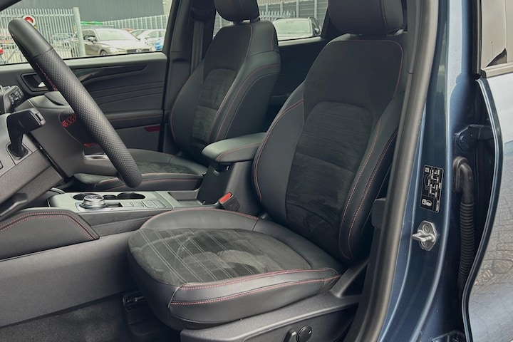 Aan boord van deze Ford houden verschillende geavanceerde systemen voor u de weg in de gaten. Ze waarschuwen u voor noodsituaties en kunnen in een aantal gevallen ook zelf ingrijpen. Uiteenlopende functies maakt de head-up display zichtbaar in de voorruit. Verkeersborddetectie herkent tijdelijke en permanente verkeersborden langs en boven de weg. Een camera houdt de juiste koers binnen de rijstrook in de gaten en het Lane-keeping systeem corrigeert bij afwijkingen. Dankzij veiligheidsvoorzieningen als dodehoekdetectie, accident avoidance system, forward collision warning system, hill hold functie, vermoeidheidsherkenning en bandenspanningcontrolesysteem, bent u steeds veilig onderweg.