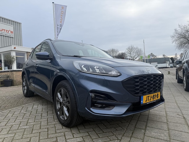 Dit noemen we een groentje met kilometers. Jongste generatie, inclusief alle voordelen. Maar de top is eraf, en dat scheelt! Deze Ford Kuga is vanwege de hybride motor een echte slimmerd. Want u rijdt zowel op brandstof als elektrisch. En dat scheelt in de kosten! Hoe koud het buiten ook is, het verwarmbare stuurwiel en de verwarmbare voorstoelen brengen uw handen, vingers en lichaam snel weer op temperatuur. De sportstoelen houden u en uw passagier stevig vast tijdens een snelle rit, maar bieden ook altijd comfortabele ondersteuning. De bagageruimte is toegankelijk via een comfortverhogende elektrische achterklep. Natuurlijk behoren 18 inch lichtmetalen velgen, LED koplampen, sportonderstel, geluidsisolerende ramen, in delen neerklapbare achterbank en LED-achterlichten ook tot de uitrusting van deze complete auto.