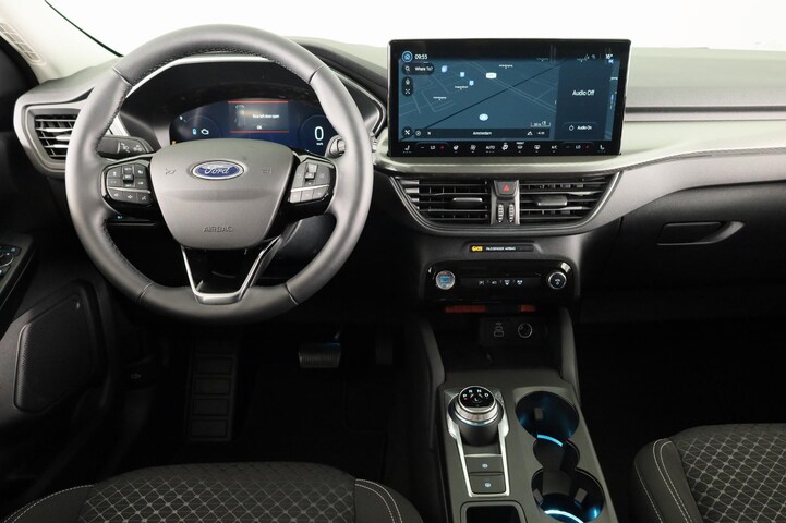 Voor het overzicht tijdens iedere rit is deze Ford Kuga voorzien van een gemakkelijk afleesbaar digitaal dashboard. Het inventieve 360 graden camerasysteem op deze auto heeft de functie om jou assistentie te bieden in nauwe ruimtes en straten, waar het achteruit rijden vaak een uitdaging is. Adaptive cruise control houdt de ingestelde snelheid vast en houdt automatisch afstand tot jouw voorligger. Je smartphone wordt een dashboard, met alle functies in beeld. Dankzij Connected Services en de speciale app. Hoog, laag, midrange: het high performance audiosysteem is volledig afgestemd op de akoestiek in deze auto. En deze auto heeft ook dashboard met spraakbediening, full map navigatiesysteem, kruisend verkeer detectie, automatische airconditioning, draadloos opladen en DAB ontvangst als standaard uitrusting.