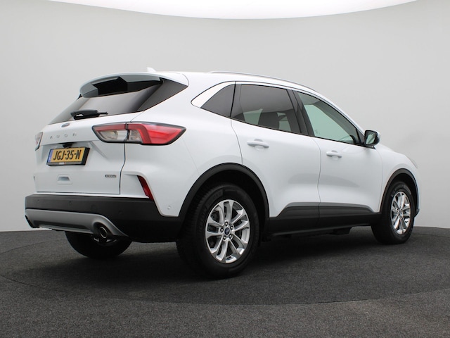 De Ford Kuga 2.5 PHEV Titanium X combineert kracht met efficiëntie. Uitgevoerd in de strakke kleur Frozen White straalt hij moderniteit en sportiviteit uit, terwijl zijn SUV-karakter direct vertrouwen wekt.