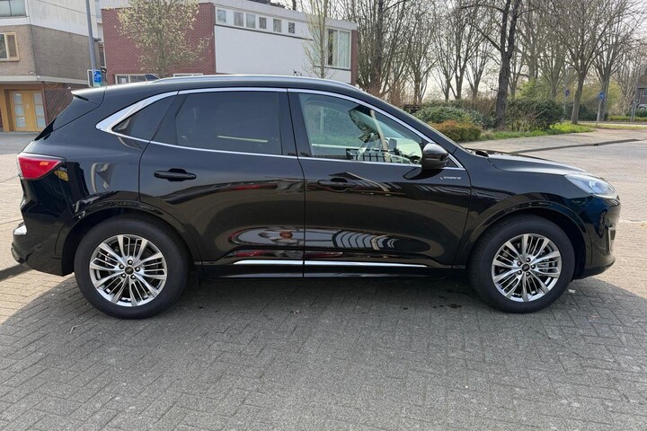 Modern design en bijzondere techniek bepalen de kwaliteiten van de hybride Ford Kuga. Deze Ford Kuga heeft een hybride motor, dus een combi van brandstof en elektrisch. Een slim en milieuvriendelijk systeem dat ook nog eens lekker kostenbesparend is. Het lederen interieur zorgt voor een klasse uitstraling. Hoe koud het buiten ook is, het verwarmbare stuurwiel en de verwarmbare voorstoelen brengen jouw handen, vingers en lichaam snel weer op temperatuur. Stevig ondersteund door de sportstoelen blijf je bij elke beweging op je plek. De elektrische achterklep opent met een druk op de knop, zodat jij gemakkelijk toegang heeft tot de bagageruimte. De uitmonstering van deze auto wordt gecompleteerd door onder meer 18 inch lichtmetalen velgen, LED koplampen, geluidsisolerende ramen, in delen neerklapbare achterbank, LED-achterlichten en sportuitlaat.
