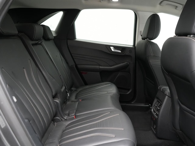Alle technologie in de Ford Kuga is er op gericht om uw rit veilig en gemakkelijk te laten verlopen. Onder de motorkap een elektromotor en een verbrandingsmotor. Veel duurzame kilometers dus! Houdt u van een luxe uitstraling? Dan is het lederen interieur een heel aantrekkelijke extra! Bestuurder en bijrijder krijgen een warm welkom: deze Ford Kuga is voorzien van verwarmbare voorstoelen. Zijwaartse g-krachten worden solide opgevangen door de sportstoelen. De achterklep opent automatisch met een druk op de knop. Handig als u met volle handen staat. De verwarmde achterbank is een luxe extra, speciaal voor de passagiers. Natuurlijk behoren 18 inch lichtmetalen velgen, LED koplampen, geluidsisolerende ramen, in delen neerklapbare achterbank, LED-achterlichten en sportuitlaat ook tot de uitrusting van deze complete auto.