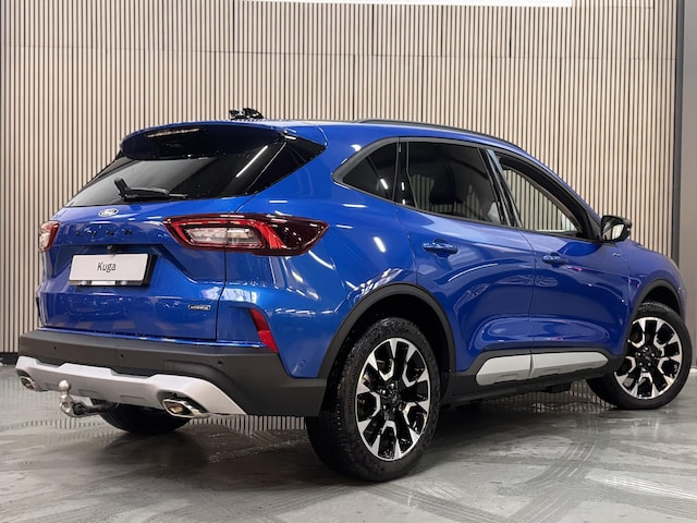 Nieuwe Model, zeer luxe en Full-Options KUGA PHEV 243pk Automaat ACTIVE-X met pas 9.600km en 2.100 kg Trekgewicht. Voorzien van compleet ACTIVE Styling & Interieur pakket icm. Coast-to-Coast verlichte Grille/strip, 19" Lichtmetalen velgen, Contrasterend Zwart Dak & Spiegelkappen, Elektrisch Wegklapbare Trekhaak, Privacy Glass, compleet Digitaal Dashboord, Leder Alcantara bekleding & Interieur, Elektrisch verstelbare & verwarmbare AGR Sportstoelen met geheugen, Verwarmbare Achterbank, Elektrische handsfree Achterklep, Adaptieve Matrix Full LED Koplampen met Grootlicht Assist, Automatisch Inparkeren icm. Parkeersensoren voor & achter, Adaptieve Cruise control icm. Stop & Go, Achteruitrijcamera & Camera voor, Head Up Dissplay, Pre-Collision Assist, Lane Centering system, Dodehoek detectie & Cross Traffic Alert, Active City stop, Verkeersbordherkenning, SYNC-4 Touchscreen met Navigatie, 360 Rondom zicht camera, Bluetooth & Voice control, Voorruitverwarming, Stuurverwarming, Climat control, B&O Premium DAB+ Audio icm. USB, Draadloos Apple Car Play & Android Auto, Elektrisch inklapbare Buitenspiegels, Keyless Entry & Starten op afstand, Alarm, Zichtpakket, Adaptieve LED Mistlampen, Draadloos opladen en Door Edge Protectors.