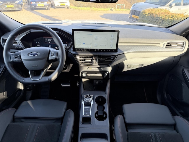 De Ford Kuga biedt een ruime en comfortabele cabine, met hoogwaardige materialen en sportieve ST-Line details. Het moderne infotainmentsysteem SYNC 4 beschikt over een groot touchscreen, volledige smartphone-integratie via Apple CarPlay en Android Auto, draadloze connectiviteit en een digitale cockpit voor optimaal overzicht. Dankzij het hoogwaardige audiosysteem en de slimme indeling van de binnenruimte geniet u van zowel comfort als gebruiksgemak.