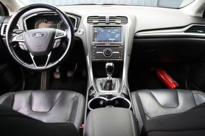 Alle technologie in de Ford Mondeo Wagon is er op gericht om uw rit veilig en gemakkelijk te laten verlopen. Dit mooie exemplaar komt uit 2015. De uitstekende prestaties van deze auto komen van de viercilinder benzinemotor en de handgeschakelde zesversnellingsbak. Lederen bekleding is in deze rijk uitgeruste auto ook aanwezig. De verwarmbare voorstoelen benadrukken nog maar eens dat we hier te maken hebben met een regelrechte verwenauto voor bestuurder en bijrijder. De sportstoelen zien er niet alleen prachtig uit, maar zijn ook functioneel, zoals u kilometer na kilometer zult merken. In deze Ford profiteert u onder andere ook van: 16 inch lichtmetalen velgen, donker getint glas achter, in delen neerklapbare achterbank, LED-achterlichten en verstelbare lendensteunen.