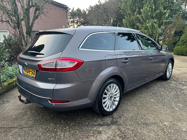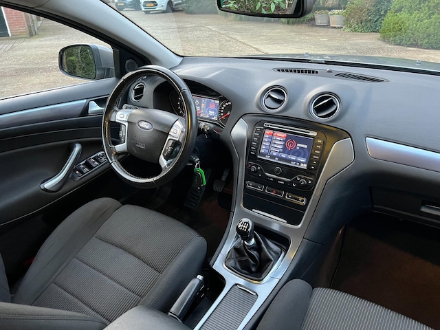 Zeer nette, ruime en luxe Ford Mondeo 1.6 Titanium. Deze Mondeo is voorzien van vele opties zoals climate control, cruise control, navigatiesysteem, bluetooth, parkeersensoren voor en achter, 17'' lichtmetalen velgen, trekhaak, privacy glass, licht en regensensor, en nog veel meer. De auto is altijd heel goed onderhouden. De laatste onderhoudsbeurt was bij 207.103 km en de distributieriem is vervangen bij 169.660 km. Verder is de auto APK-gekeurd t/m 5 april 2026. Deze Ford Mondeo rijdt en schakelt zeer goed!