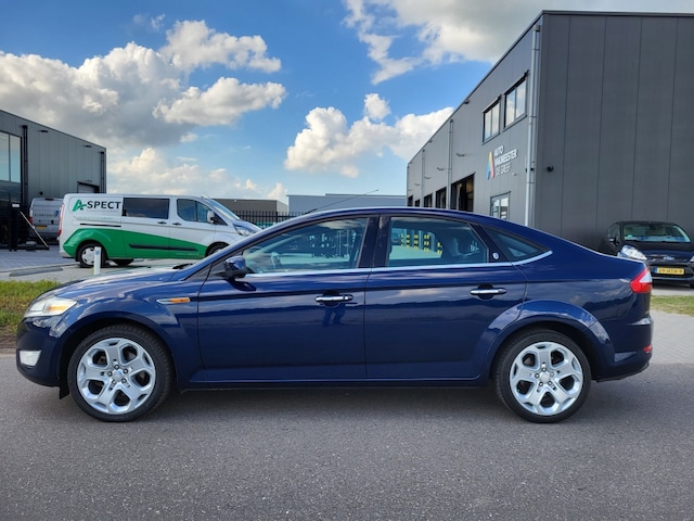 Nette, van tweede eigenaar afkomstige en goed onderhouden Ford Mondeo met krachtige 2.0 motor (145 pk) in luxe Ghia uitvoering met o.a. cruis-control, climate-control, navigatie, 18'' wielen en trekhaak (trekgewicht 1500 kg)
