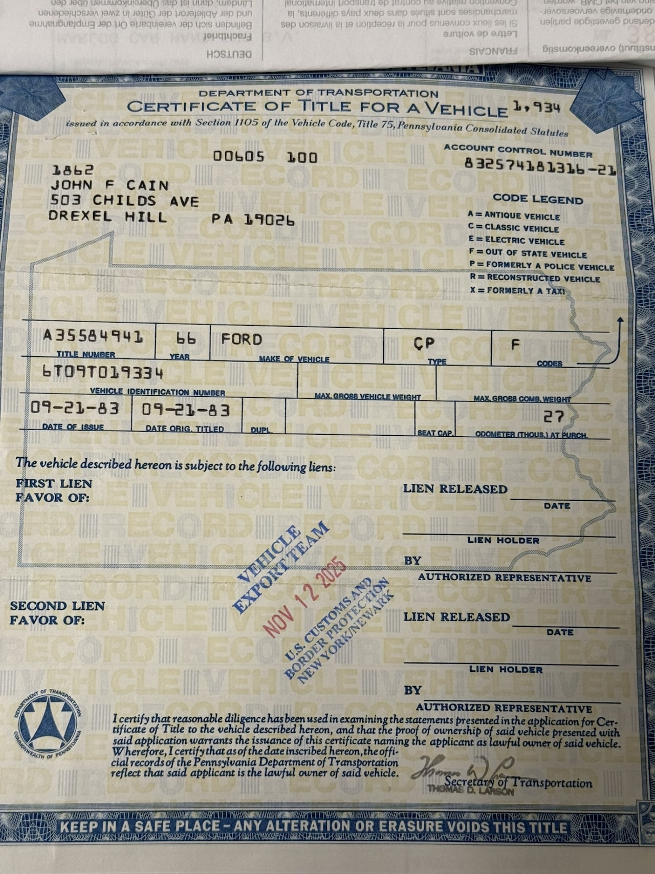 USA / 1966 / 3-Speed Manual / 3, 3 Liter 200 Cu 6-cilinder / / Project