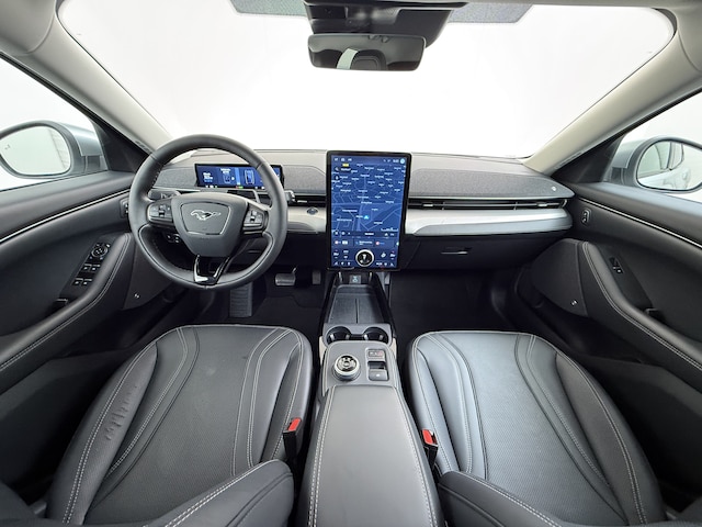 Waar anderen stoppen, zet Ford een stapje extra. In techniek, in comfort, in kostenbeheersing. Go Further, dus! U kunt ervoor kiezen vanwege het milieu. Maar de elektromotor biedt ook power en prestaties! De krachtige motor geeft deze Ford uitstekende prestaties. De hoogwaardige, lederen bekleding benadrukt de kwaliteit van deze auto. U past de stoelen moeiteloos aan, ze zijn elektrisch in te stellen en hebben bovendien een geheugen. Met een druk op de knop gaat de elektrische achterklep open. Vergezichten krijgen een extra dimensie door het glazen panoramadak. Deze Ford Mustang Mach-E deze heeft een verwarmd stuurwiel. Nooit meer koude handen onderweg. Natuurlijk behoren 18 inch lichtmetalen velgen, LED koplampen, geluidsisolerende ramen, in delen neerklapbare achterbank, LED-achterlichten en verstelbare lendensteunen ook tot de uitrusting van deze complete auto.