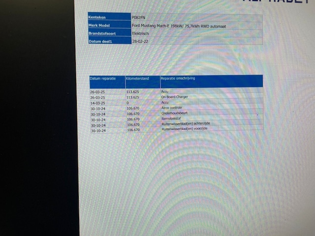 Te koop aangeboden: deze prachtige rode FORD MUSTANG MACH-E RWD 75 kWh uit 2022. Met zijn SUV carrosserie en automatische transmissie biedt deze auto zowel comfort als kracht. De kilometerstand van 125227 wordt gegarandeerd door BOVAG, dus u kunt met een gerust hart de weg op. Deze FORD MUSTANG MACH-E is voorzien van diverse luxe accessoires die het rijden nog aangenamer maken. Zo zijn de LED-koplampen niet alleen stijlvol, maar zorgen ze ook voor uitstekend zicht op de weg. De lederen bekleding voegt een vleugje luxe toe aan het interieur, terwijl het panorama dak zorgt voor een geweldig uitzicht. Met park control voor en achter, achteruitrijcamera en Apple CarPlay is inparkeren een fluitje van een cent. Daarnaast zorgen de automatische airconditioning, stuur- en stoelverwarming voor een aangename rijervaring. De radio DAB zorgt voor kristalhelder geluid, terwijl de Apple CarPlay voor naadloze connectiviteit met uw smartphone zorgt. De FORD MUSTANG MACH-E is 100% dealeronderhouden, waardoor u verzekerd bent van een auto in topconditie. Het panorama dak en de achteruitrijcamera dragen bij aan het rijgemak, terwijl de lederen bekleding het interieur een luxe uitstraling geeft. U zult zeker genieten van het comfort en de prestaties van deze auto. Wacht niet langer en maak snel een afspraak om deze FORD MUSTANG MACH-E RWD 75 kWh zelf te ervaren. Neem contact met ons op voor meer informatie of om direct een proefrit te plannen.