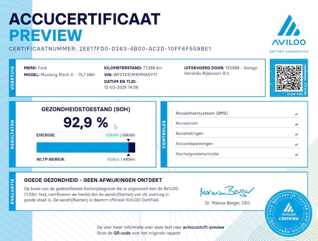 Accu: 75 kWh, Conditie: 93%