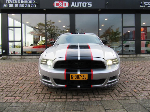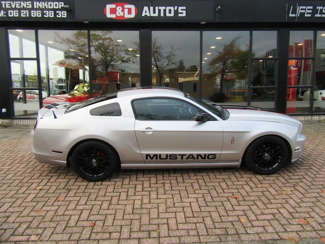 Super dikke muscle mustang v6 uit 2014 met de juiste looks en specs in frost silver metallic en zwart leder en km ipv miles