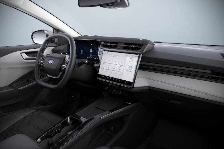 Praktisch, helder en uitermate handig is het digitale dashboard. Alle functies haarscherp in beeld! Met de 360 graden camera kun je elk obstakel of gevaar rondom de auto detecteren, wat je veiligheid verhoogt. Als je de adaptive cruise control inschakelt, regelt de auto zelf de snelheid en de afstand tot de auto voor je. De ingebouwde file assistent is een echte helper als het vaststaat onderweg. Het systeem meet ruimte tot de auto vóór u permanent en activeert zelfs de remmen als je voorligger stopt. Dankzij Connected Services weet je precies waar je auto geparkeerd staat. Ook andere functies, zoals bandenspanning en brandstofniveau, zijn via de app altijd onder handbereik. Met premium audiosysteem, navigatiesysteem, automatische airconditioning, DAB ontvangst, regensensor en keyless entry is deze Ford helemaal compleet.