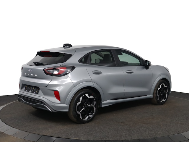 Gebouwd voor liefhebbers van autorijden, deze Ford Puma levert sportieve prestaties en onafgebroken rijplezier. Een handige voorziening op deze auto is de elektrische achterklep die u op afstand kunt openen. Comfortabel houvast krijgt u van het verwarmd stuurwiel. De koplampen zijn voorzien van matrix LED-verlichting waarmee u aanzienlijk verder kan kijken in het donker. Het systeem past zelf de lichtstraal aan op het moment tegenliggers verblind kunnen worden. Bij de uitrusting van deze Ford horen onder meer 18 inch lichtmetalen velgen, sportonderstel, geluidsisolerende ramen, in delen neerklapbare achterbank, LED-achterlichten en verstelbare lendensteunen. Geavanceerde technische systemen houden tijdens elke rit het verkeer in de gaten en reageren op potentieel gevaarlijke situaties. Onderweg fungeert de verkeersbord-detectie als het ware als uw bijrijder en attendeert u op de verkeersborden langs de weg. Het Lane-keeping systeem zorgt voor een automatisch constante positie binnen de rijstrook. Aan de snellader bent u in 23 minuten weer van 10 tot 80% geladen. Aan een 3 fase laadpaal in slechts 4 uur volledig vol.