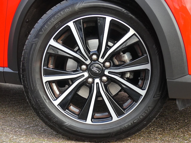 Omdat rijden een plezier mag zijn, staat deze Ford Puma enthousiast te glimmen in de showroom. Technisch in topconditie, strak in de lak... echt een droomauto! De krachtige benzinemotor van deze auto is gekoppeld aan een handgeschakelde zesversnellingsbak. Op koude en donkere dagen zijn de verwarmbare voorstoelen een uitkomst. De sportstoelen geven het interieur een super strakke look. Deze Ford Puma heeft een verwarmd stuurwiel. Nooit meer koude handen onderweg. Ook 17 inch lichtmetalen velgen, LED koplampen, in delen neerklapbare achterbank, LED-achterlichten, verstelbare lendensteunen en snelheidsafhankelijke stuurbekrachtiging horen tot de voorzieningen op deze auto. Als u regelmatig met een aanhanger of een fietsendrager op pad bent, is de afneembare trekhaak een praktische extra. Functies activeren en storingen opsporen? Bij deze auto gaat het eenvoudig via uw smartphone. Overal en altijd. Voor een krachtige en natuurlijke geluidsweergave zorgt het high performance audiosysteem. De achteropkomend verkeer waarschuwing geeft een signaal als degene achter u te dicht op u zit. Ook handig en veilig bij het wisselen van rijbaan. De automatische airconditioning zorgt voor een prettige binnentemperatuur. Ook dashboard met spraakbediening, full map navigatiesysteem, DAB ontvangst, parkeersensoren achter, regensensor en cruise control zijn aan boord. Zoals u mag verwachten van deze Ford Puma is hij uitgerust met een reeks aan actieve veiligheidssystemen. In het instrumentarium kunt u bovendien de verkeersborden zien die u onderweg tegenkomt. Zo helpt deze Ford u om veiliger te rijden. Ongemerkt buiten de rijstrook raken? Nee hoor, het Lane-keeping systeem waarschuwt en corrigeert. Forward collision warning waarschuwt bij een dreigende aanrijding met een voorligger. Verder is deze auto uitgerust met hill hold functie, brake assist en bandenspanningcontrolesysteem. Neem contact op voor een afspraak en laat een proefrit het bewijs leveren!