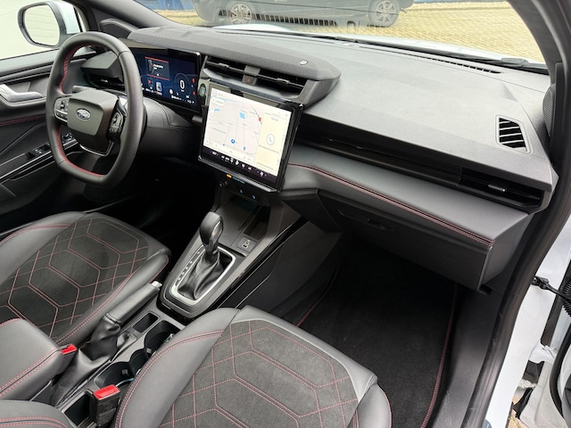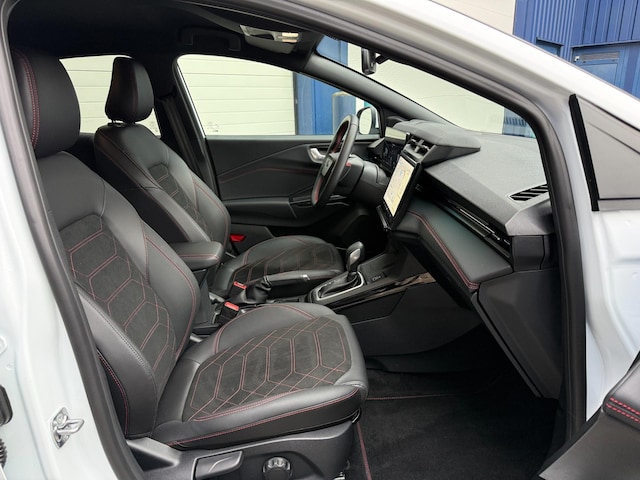 De Automannen bieden aan: rechtstreeks van eerste eigenaar afkomstig, een sportieve Ford Puma 1.0 EcoBoost Hybrid 155pk automaat ST LINE voorzien van Climate Control, Cruise Control, Ford B&O Audio met Navigatie, DAB, USB, Camera en draadloos opladen, Leer stoffen bekleding in zwart met rode stiksels en een zwarte hemelbekleding, 18 inch velgen, Elektrisch bedienbare achterklep en meer.