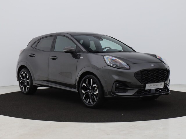 U ziet het al aan de buitenkant en u voelt het zodra u de krachtige motor start, deze sportieve Ford Puma is gemaakt om prestaties te leveren. De aandrijving van deze Ford wordt verzorgd door een driecilinder benzinemotor en een automatische transmissie. Comfortabel zitten, ook als de rit onstuimig is? Dat kan met de sportstoelen. Een praktische extra is de elektrisch bedienbare achterklep die opent en sluit met een druk op de knop. Ook 18 inch lichtmetalen velgen, Full LED koplampen, sportonderstel, halflederen bekleding, geluidsisolerende ramen en zwarte hemelbekleding zijn aan boord.
