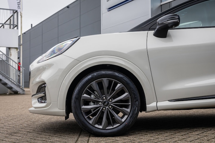 Rijden in een Ford betekent toekomstgericht de weg op gaan. Een stapje meer doen, de voorsprong pakken. Go Further, zoals ze zelf zeggen. Hoewel de auto uit 2025 komt, heeft hij maar 555 kilometer gereden. In deze auto vindt u een benzinemotor en een automatische transmissie. Behaaglijk onderweg zijn? Als bestuurder geniet u van de verwarmbare voorstoelen. Net als uw bijrijder! De sportstoelen zorgen voor een strak uiterlijk én een uitstekende zitsteun. De achterklep opent automatisch met een druk op de knop. Handig als u met volle handen staat. Geen gekleum meer in de koude dagen. Het verwarmd stuurwiel voelt als een weldaad na het ijskrabben. De matrix LED-verlichting is het allernieuwste op het gebied van autoverlichting. Altijd maximaal licht op de weg, zonder tegenliggers te hinderen! Tot de uitrusting van deze Ford behoren ook 18 inch lichtmetalen velgen, sportonderstel, geluidsisolerende ramen, in delen neerklapbare achterbank, LED-achterlichten en verstelbare lendensteunen. Rijfuncties worden glashelder en overzichtelijk weergegeven via het digitale dashboard. De 360 graden camera op deze auto biedt u een volledig, panoramisch zicht op de omgeving. Met adaptive cruise control houdt deze auto automatisch afstand tot uw voorligger. Spraakbediening verhoogt de veiligheid en het gebruiksgemak. De auto luistert naar uw instructies en volgt ze op. Kilometerstand? Oliepeil? Accuspanning? Allemaal te zien via de app. Overal. Altijd. Dankzij Connected Services. Ook is de Ford uitgerust met: high performance audiosysteem, full map navigatiesysteem, automatische airconditioning, draadloos opladen, DAB ontvangst en regensensor. De geavanceerde technologie in deze Ford is in staat om onderweg het verkeer om u heen te monitoren en er op te reageren. Zo hebt u als het ware een automatische co-piloot aan boord. Een belangrijke bijdrage aan de veiligheid onderweg levert de verkeersbord-detectie in deze Ford. Mooi binnen de lijnen van de rijstrook blijven? Het Lane-keeping systeem helpt altijd een handje. Een noodsituatie? Dan is remmen cruciaal. Daarom heeft deze Ford Puma Brake Assist als remondersteuning. In deze Ford vinden we verder een dodehoekdetectie en bandenspanningcontrolesysteem. Als u wilt, kunt u al snel rijden met uw nieuwe Puma. Onze verkoopadviseurs staan klaar om u de auto te laten zien. Dan leggen ze u meteen uit welke financieringsvormen we erbij kunnen aanbieden. Tot ziens in onze showroom!