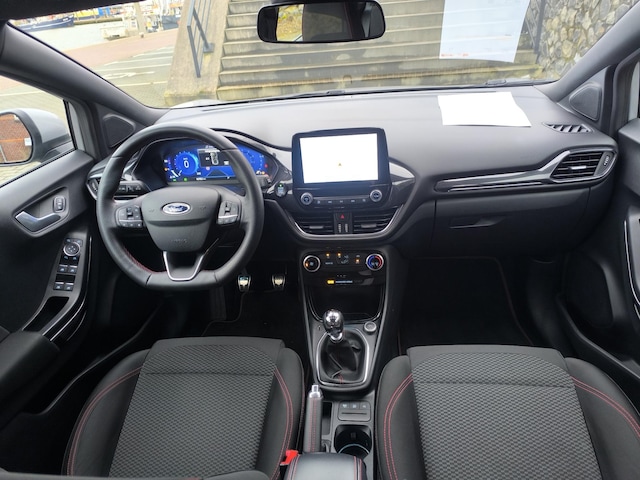 Overzicht, informatie en functionaliteit: dat biedt het digitale dashboard. Zoals u van zo'n jonge auto mag verwachten, zijn hier ook de geavanceerde remote services aanwezig. Simpelweg met een app op uw smartphone controleert u op afstand de status van de auto en bedient u diverse functies. Het full map navigatiesysteem en het audiosysteem (met DAB-ontvangst!) bedient u met knoppen op het stuur of met gesproken commando's. Telefoonaccu in het rood? Laad 'm simpel op met de draadloze oplaadmogelijkheid voor telefoons. Met de hulp van de parkeersensoren kost inparkeren en uitparkeren u geen enkele moeite. U bent in deze Ford ook voorzien van cruise control, sportstuurwiel, keyless entry, airconditioning, centrale deurvergrendeling met afstandsbediening en boordcomputer.