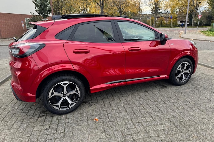 Bij het ontwerpen van de Ford Puma stonden jouw comfort en jouw veiligheid centraal. Deze Puma is van het bouwjaar 2025. Hij heeft een benzinemotor en een automatische transmissie. Bestuurder en bijrijder krijgen een warm welkom: deze Ford Puma is voorzien van verwarmbare voorstoelen. Laat die bochten maar komen! In de sportstoelen zitten jij en je bijrijder altijd goed! De elektrische achterklep opent met een druk op de knop, zodat jij gemakkelijk toegang heeft tot de bagageruimte. Het glazen panoramadak geeft jou een ongekende rijsensatie: wat een licht en zicht! Nooit meer koude handen of koude vingers in de auto. Stuurverwarming zorgt ervoor dat het stuur behaaglijk warm aanvoelt. Ook Full LED koplampen, sportonderstel, extra getint glas, in delen neerklapbare achterbank, LED-achterlichten en verstelbare lendensteunen zijn aan boord.