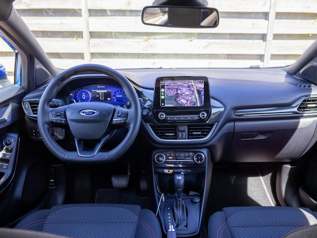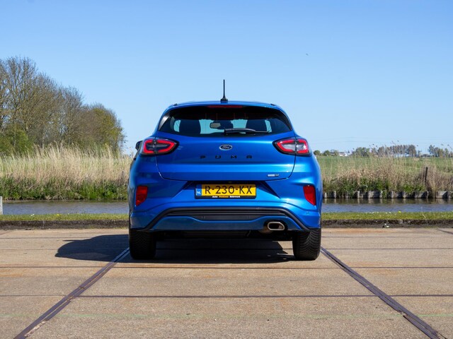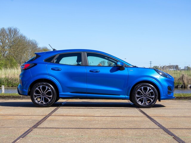 Dit exemplaar betreft een Ford Puma 1.0 EcoBoost Hybrid ST-Line, uitgevoerd met LED-verlichting, een Virtual Cockpit en automatische airconditioning (climate control). Daarnaast beschikt de auto over Apple CarPlay/Android Auto, stoel- en stuurverwarming en een verwarmde voorruit, wat het comfort en gebruiksgemak aanzienlijk verhoogt, vooral in de koudere maanden. De ST-Line uitvoering geeft de auto een extra sportieve uitstraling met een strak afgewerkt interieur.