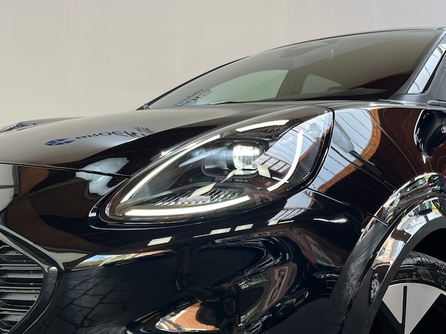 Toonaangevend technologie, moderne veiligheidsvoorzieningen en volop rijplezier. Met deze Ford Puma kiest u voor een auto die alles heeft wat u belangrijk vindt. In deze auto vindt u een benzinemotor en een automatische transmissie. Donkere en koude maanden? U zit altijd goed dankzij de stoelverwarming. Met een druk op de knop gaat de elektrische achterklep open. Het verwarmbare stuurwiel is een teken van ultieme luxe. Deze voorziening is een topklasse auto waardig. Bij de rijke uitrusting horen ook 19 inch lichtmetalen velgen, Full LED koplampen, sportonderstel, geluidsisolerende ramen, in delen neerklapbare achterbank en LED-achterlichten. Het digitale dashboard geeft alle up-to-date info en functies voor een slimme en veilige rit. Met een gerust hart achteruitrijden? Dat kan, dankzij de achteruitrijcamera. Dankzij Connected Services heeft u overal en altijd uw dashboard op zak. Alle belangrijke functies zijn te checken via de app. Uw favoriete muziek klinkt beter dan ooit met het ingebouwde high performance audiosysteem. Zoals van een eigentijdse auto verwacht mag worden, is deze Ford Puma voorzien van een draadloze oplaadmogelijkheid voor telefoons. Natuurlijk behoren dashboard met spraakbediening, full map navigatiesysteem, automatische airconditioning, DAB ontvangst, regensensor en cruise control ook tot de uitrusting van deze complete auto. Het rijden met deze Ford wordt nog meer ontspannen dankzij de innovatieve technieken die onderweg over uw veiligheid waken. Verkeersbord-detectie herkent verkeersborden en toont deze op het instrumentarium van de auto. Indien u onbedoeld de rijstrook lijkt te verlaten, reageert het Lane-keeping systeem meteen en corrigeert. Brake assist verhoogt de remdruk in een noodsituatie zodat u sneller stil staat. Even bellen voor een afspraak en u kunt deze auto van top tot teen zelf bekijken.