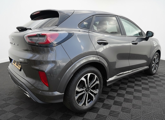 Hij is compact en veelzijdig. Zijn stijlvolle design maakt indruk, en het ruime interieur van de Ford Puma biedt comfort voor het hele gezin. Hij heeft een benzinemotor en een handgeschakelde zesversnellingsbak. De verwarmbare voorstoelen benadrukken nog maar eens dat we hier te maken hebben met een regelrechte verwenauto voor bestuurder en bijrijder. Pak aan, 't is winter! Zo'n verwarmd stuurwiel is dan bijzonder prettig! De uitmonstering van deze auto wordt gecompleteerd door onder meer 17 inch lichtmetalen velgen, LED koplampen, zwarte hemelbekleding, donker getint glas achter, in delen neerklapbare achterbank en LED-achterlichten.
