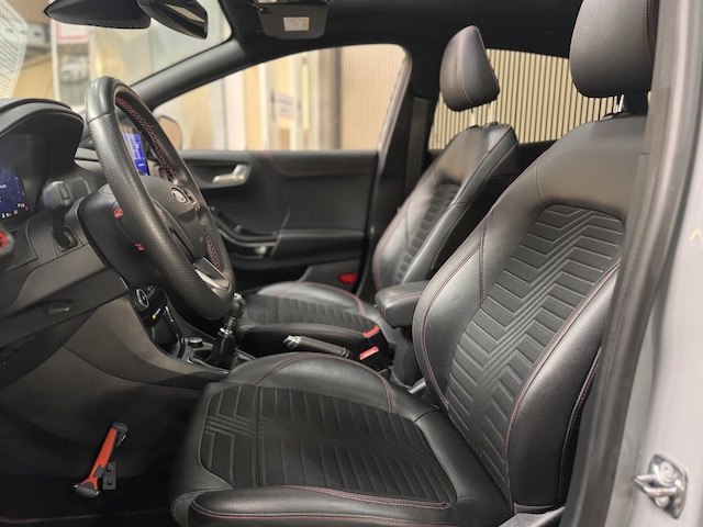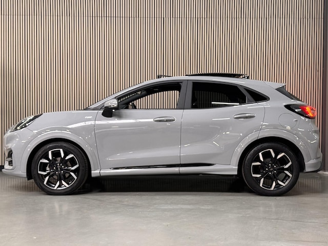Luxe, Sportieve en compleet Dealeronderhouden PUMA 125pk EcoBoost Hybrid ST-Line X in de kleur Grey Matter met Elektrisch te openene Panoramadak en Afneembare Trekhaak. Verder voorzien van Full Body Styling pakket icm. Sportonderstel, 18" Lichtmetalen velgen, Privacy Glass, Half Lederen bekleding icm. in hoogte verstelbare Sportstoelen, Volledig Digitaal Dashboard, Touchscreen Navigatie, LED Koplampen icm. Grootlicht-Assistent, Climat control, Cruise control, Pre-Collision Assist, Lane Keeping Aid, Verkeersbordherkenning, Wrong Way Alert, B&O Premium DAB+ Audio icm. Subwoofer, Parkeersensoren, Draadloos opladen, Bluetooth & Voice control & USB, Apple Car Play & Android Auto, Elektrisch inklapbare Buitenspiegels, Adaptieve LED Mistlampen en Zichtpakket.