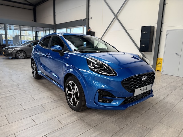 Maak kennis met de Ford Puma. Fords compacte cross-over SUV. Compact van buiten en ruim van binnen. De sportieve lijnen en de aflopende daklijn laten zien dat de Puma een sportieve auto is. Door de hoge zit is het instappen erg gemakkelijk. Wist u dat de kofferbak van de Puma groter is dan de bagageruimte van de Ford Focus? Daarnaast is deze Puma voorzien van hybride techniek. De mild-hybride technologie omvat een elektromotor die helpt de efficiency te verbeteren.