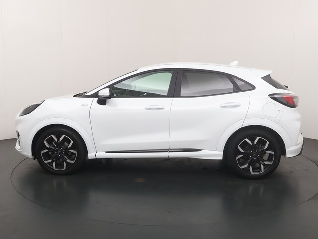 Maak kennis met de Ford Puma. Fords compacte crossover SUV. Compact van buiten en ruim van binnen. De sportieve lijnen en de aflopende daklijn laten zien dat de Puma een sportieve auto is. Door de hoge zit is het instappen erg gemakkelijk. Wist u dat de kofferbak van de Puma groter is dan de bagageruimte van de Ford Focus? Daarnaast is deze Puma voorzien van hybride techniek.